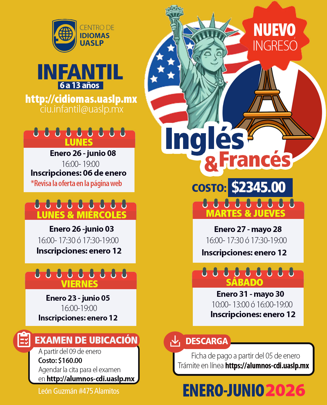 ° Estructura de niveles del idioma inglés para niños ° Trámites en línea: https://alumnos-cdi.uaslp.mx