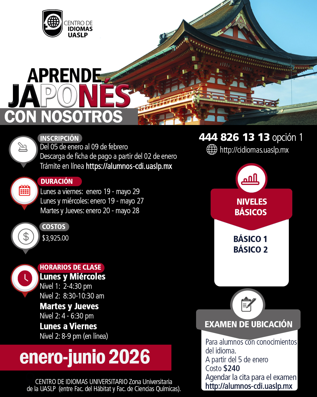 Trámites en línea (ficha de pago e inscripción): https://alumnos-cdi.uaslp.mx
